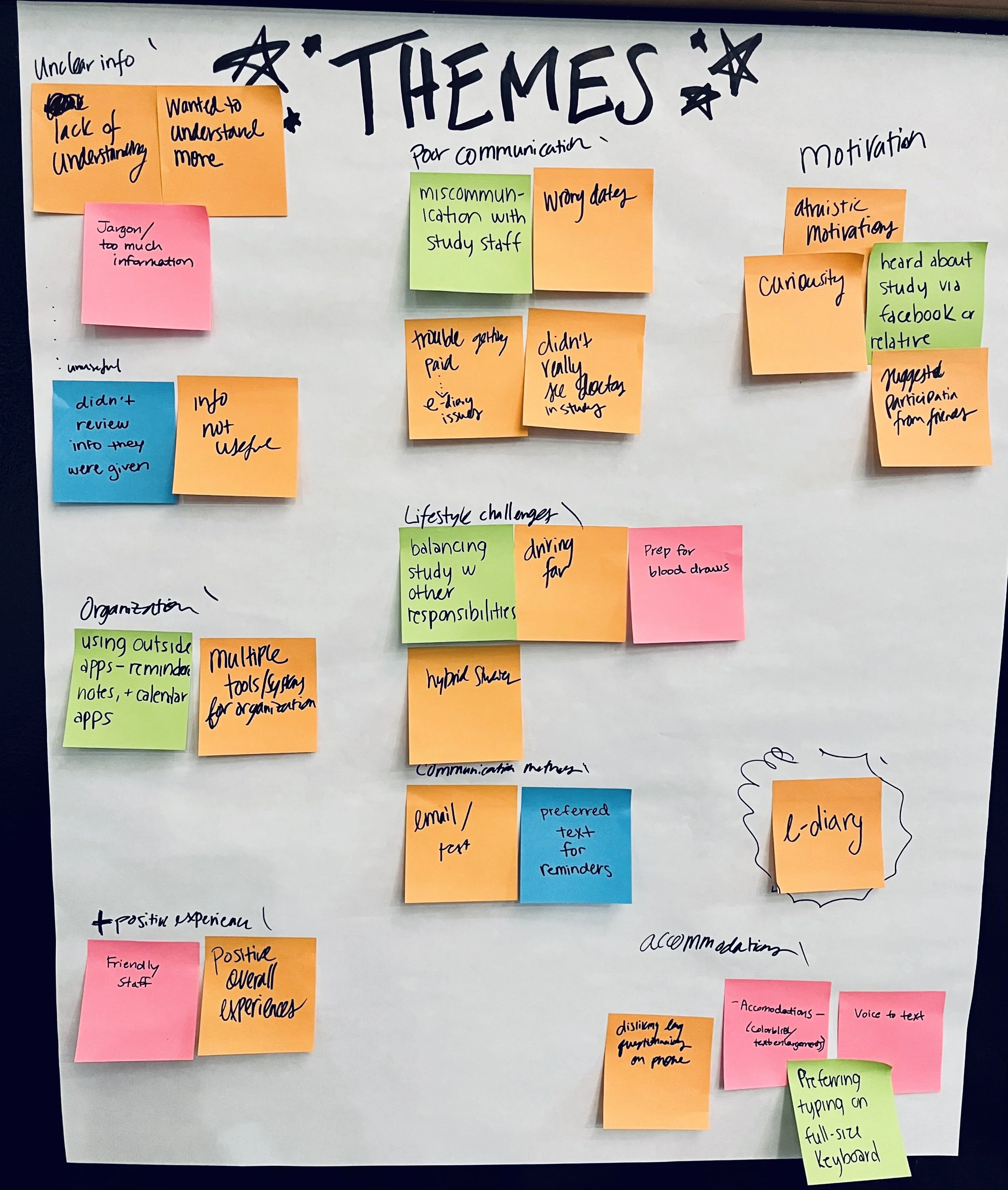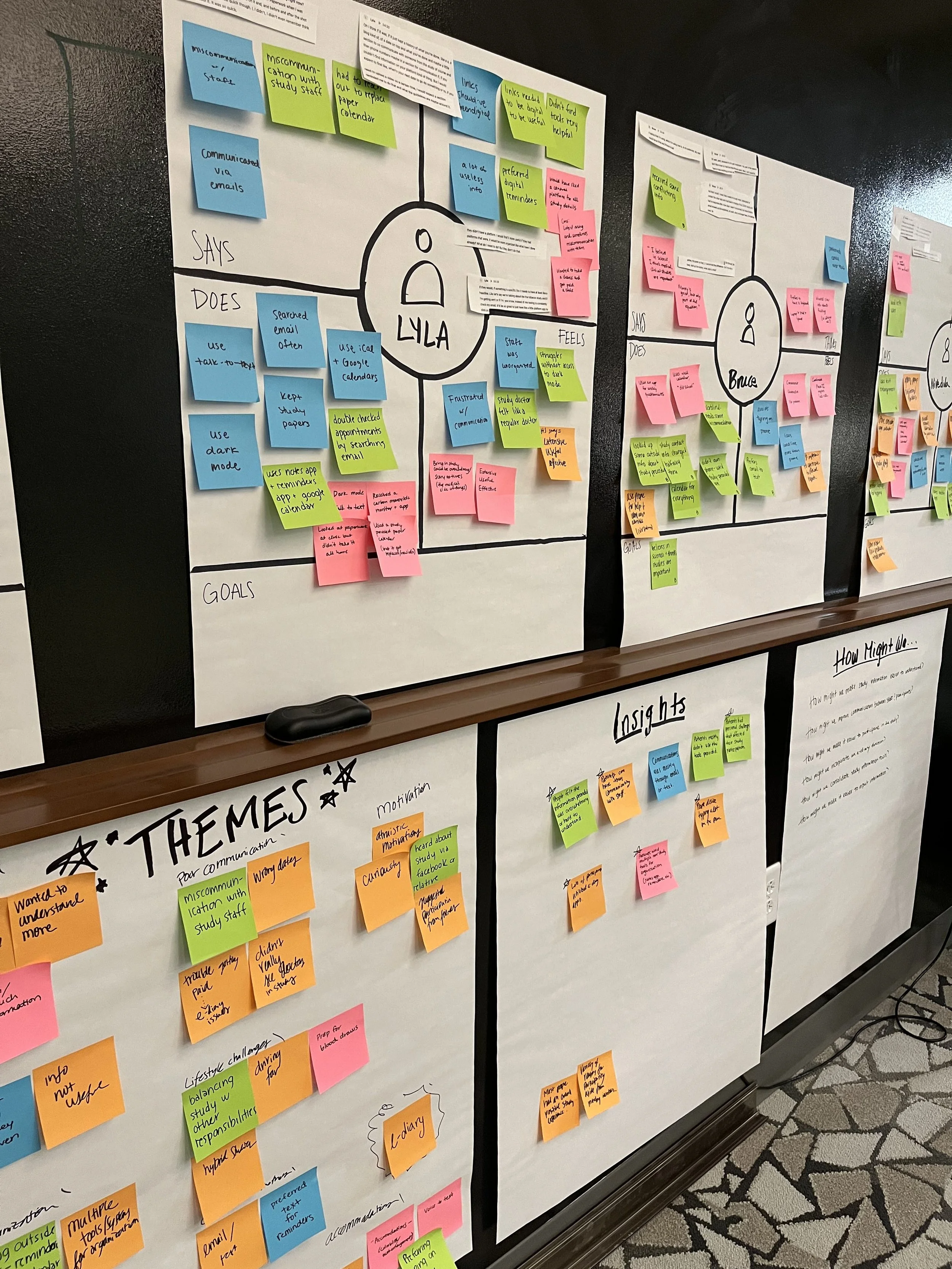 After conducting our interviews, I organized an empathy workshop for our team to go over and synthesize what we learned. Some key themes we uncovered were:
